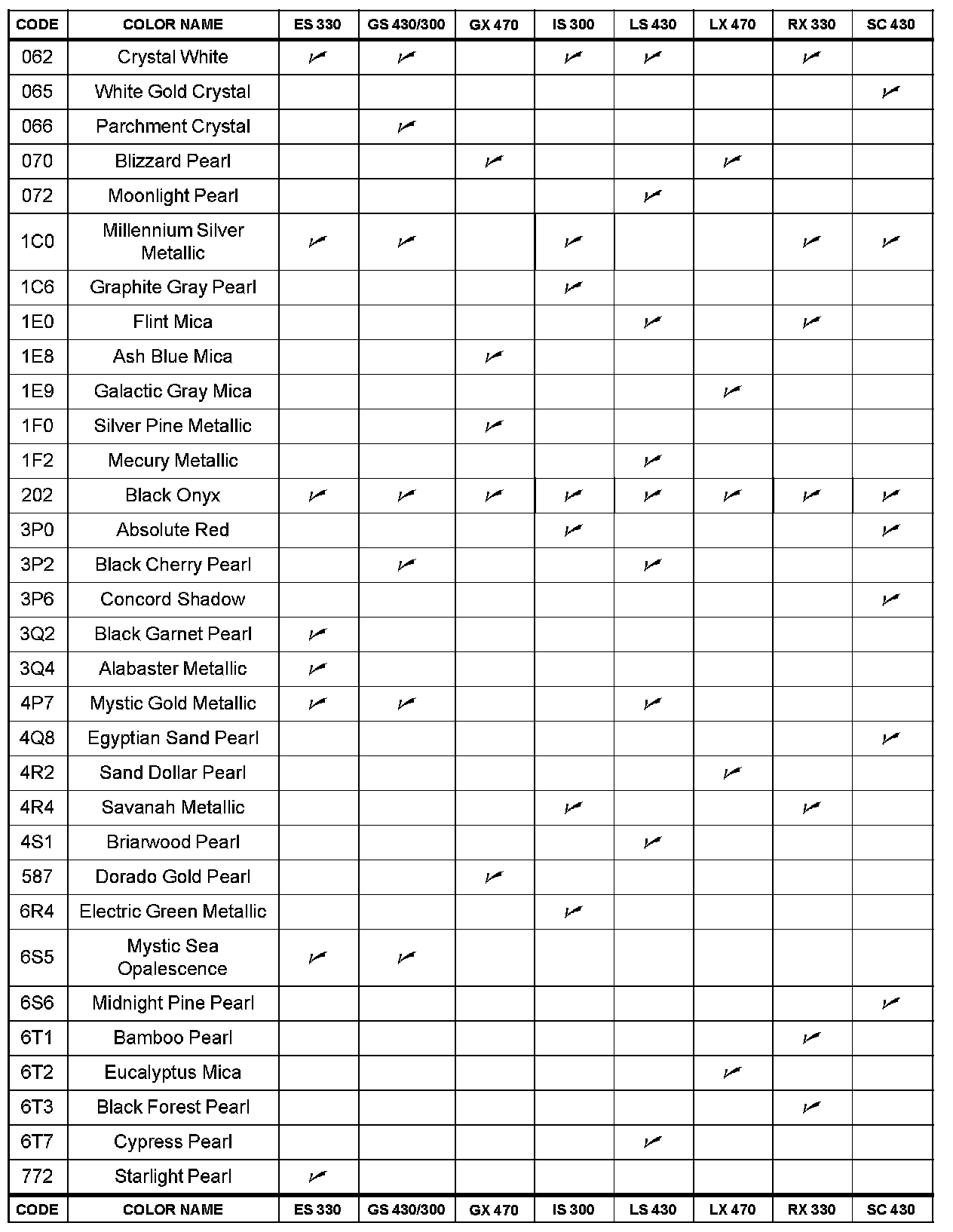 Paint Colors (from 2004):
