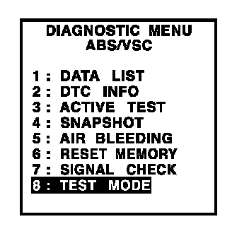 3 Check that the ABS warning light and VSC light blink (test mode).