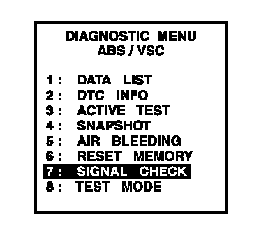 HINT: The signal check may not be completed if the vehicle has its wheels spun or the steering wheel turned during this check.