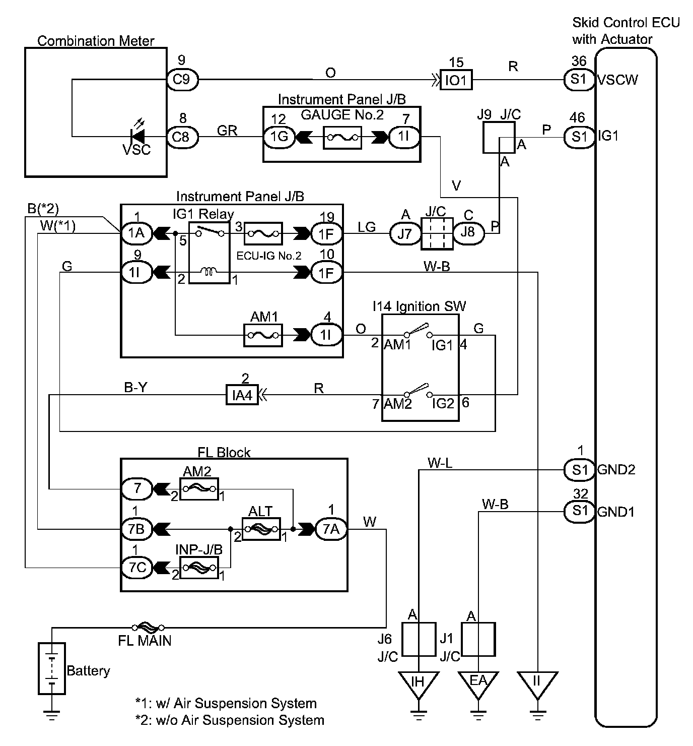 VSC Warning Light Circuit (Remains On)