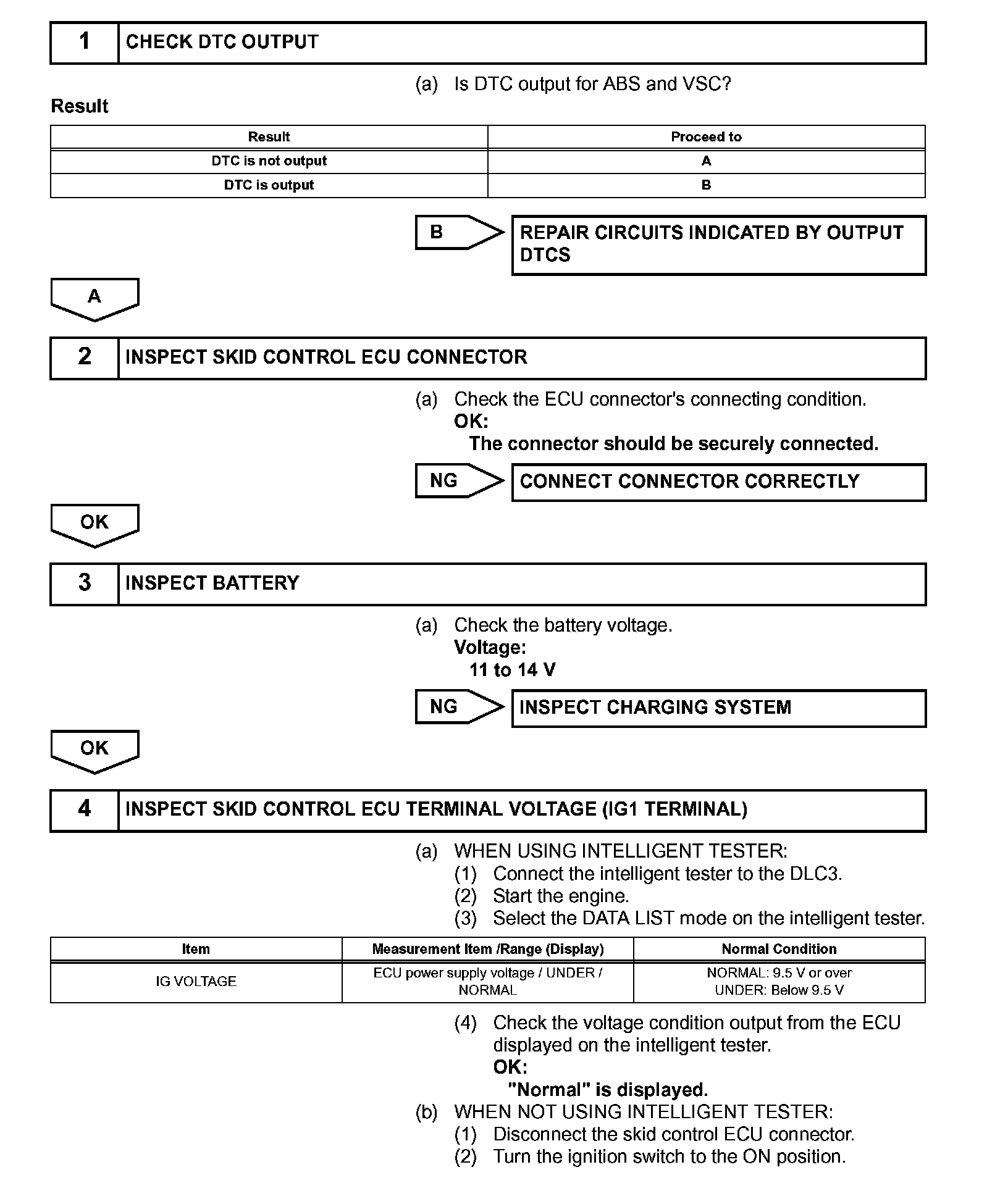 If the ECU stores DTC, the VSC warning light comes on in the combination meter.