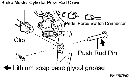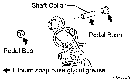 a. Apply lithium soap base glycol grease to the ends and sides of 2 new brake pedal bushes.