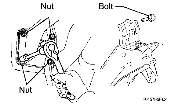 a. Remove the bolt, the 4 nuts and the brake pedal support assembly.