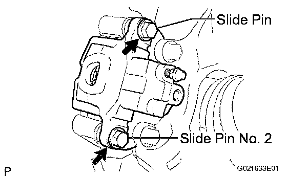 NOTICE: Do not damage the front disc brake cylinder slide pin No. 2.