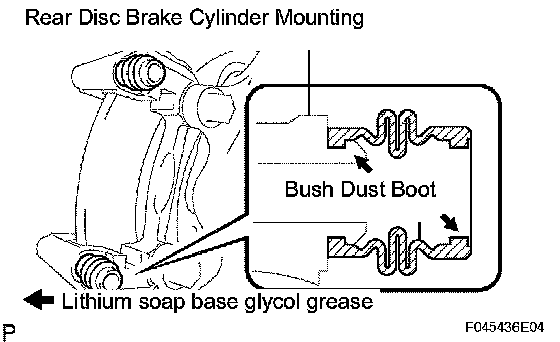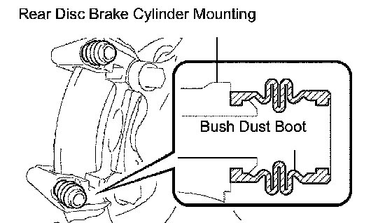 a. Apply lithium soap base glycol grease to a new rear disc brake cylinder slide bush.