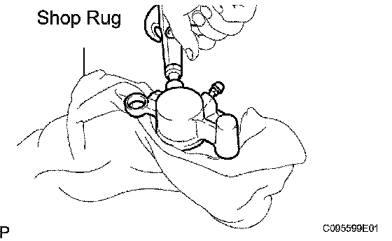 a. Place a shop rug between the brake piston and the rear disc brake cylinder sub-assembly.