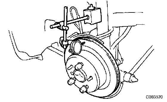 c. If the disc runout is equal to maximum value or greater, check the bearing play in the axial direction and check the axle hub runout. if the bearing play and axle hub runout are not abnormal, adjust the disc runout or grind it on a "On-car" brake lathe.