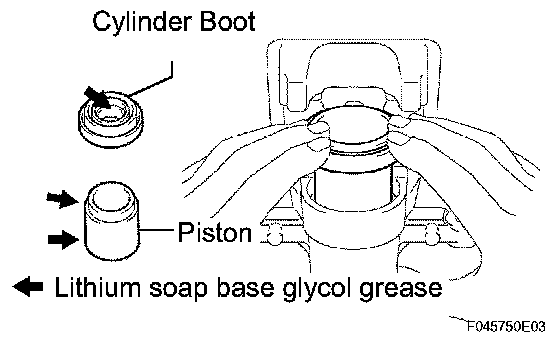 a. Apply lithium soap base glycol grease to the rear disc brake piston and a new cylinder boot.