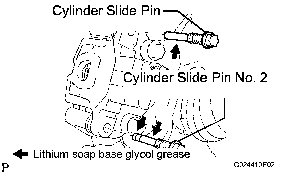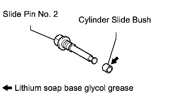 c. Apply the lithium soap base glycol grease to the sliding part and the seal surface of the slide pin No. 2.