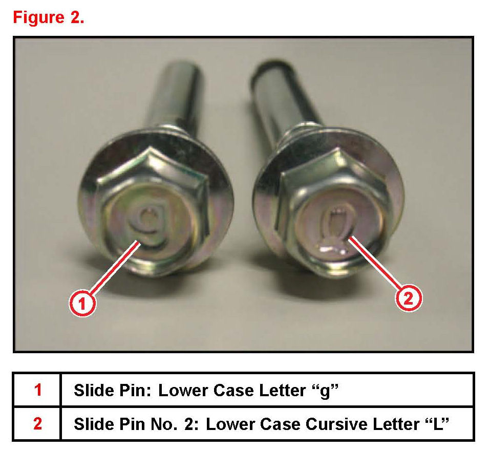 1. Rear Caliper Slide Pin and Slide Pin No.2 Identification