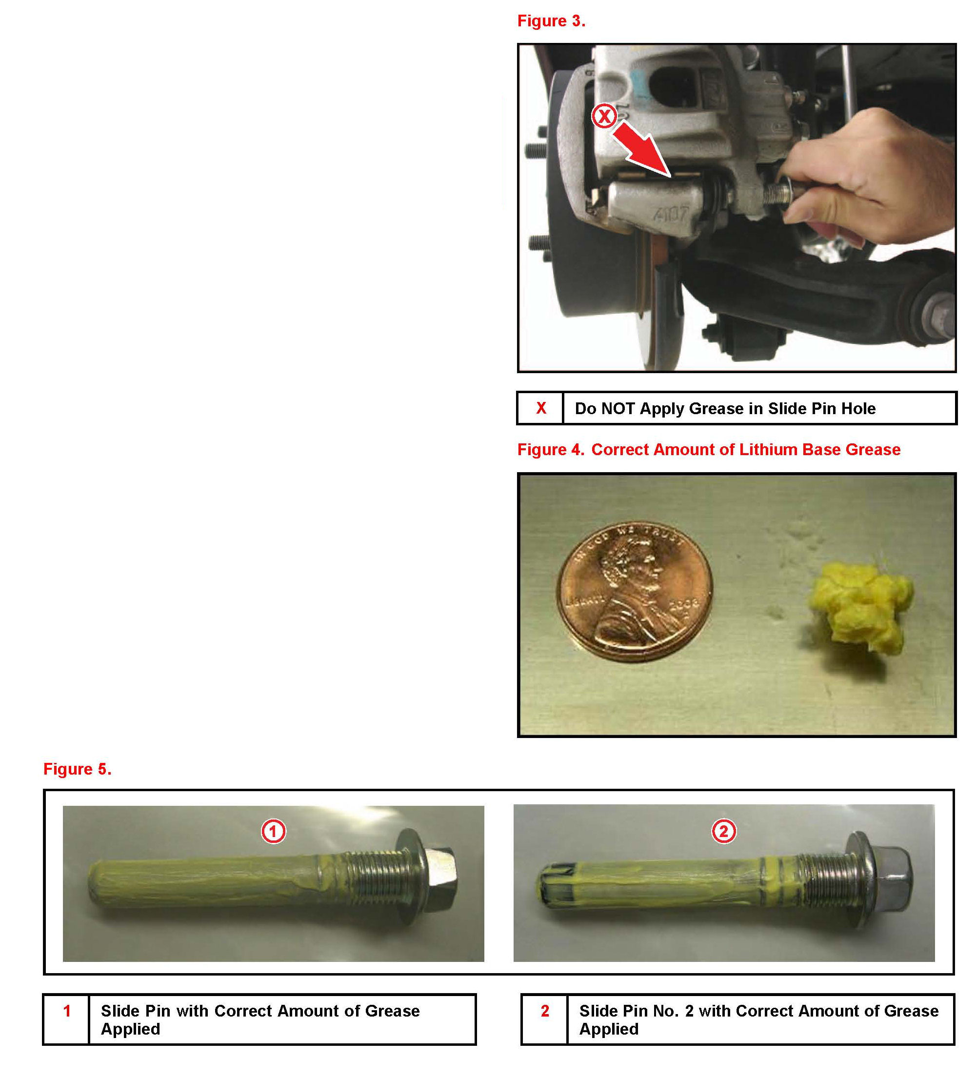 A. When reinstalling rear caliper slide pins apply only a small amount of lithium base grease to the bolt shank surface of the pins.