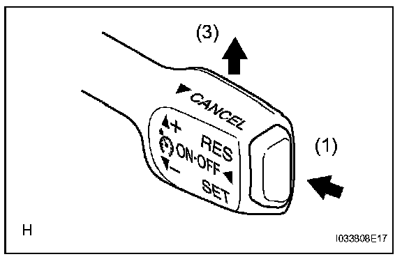 4. After releasing the switch, check that the vehicle cruises at the set speed.