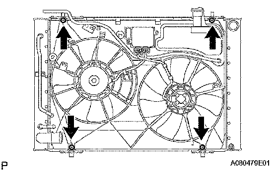 c. Remove the 4 bolts and the fan shroud.