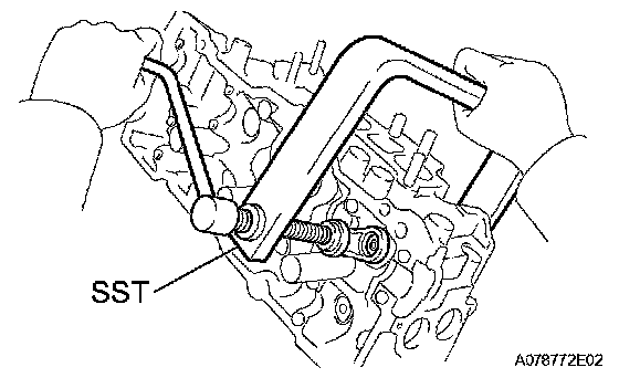 a. Using SST, compress the valve spring and remove the 2 keepers, retainer spring and valve.