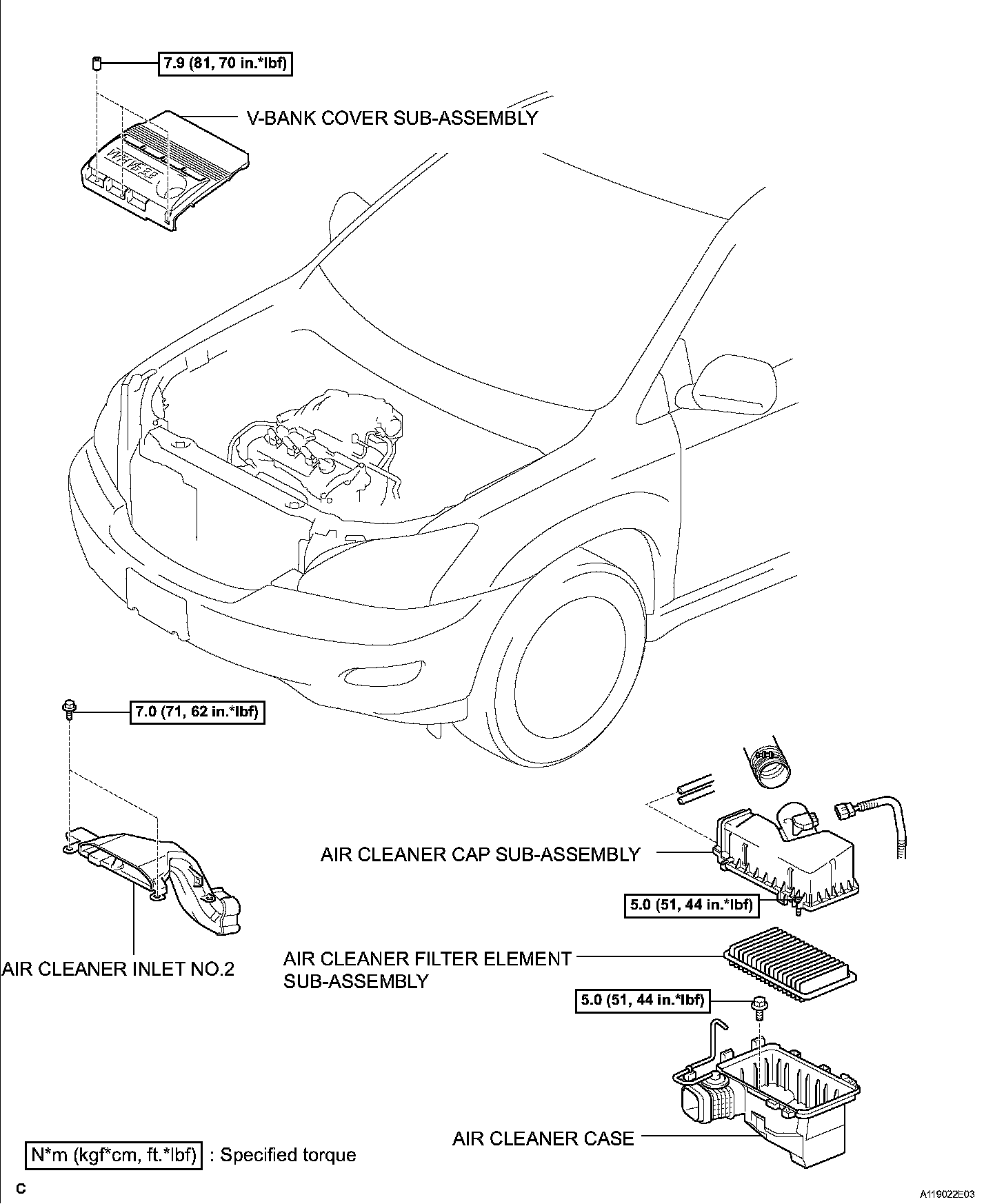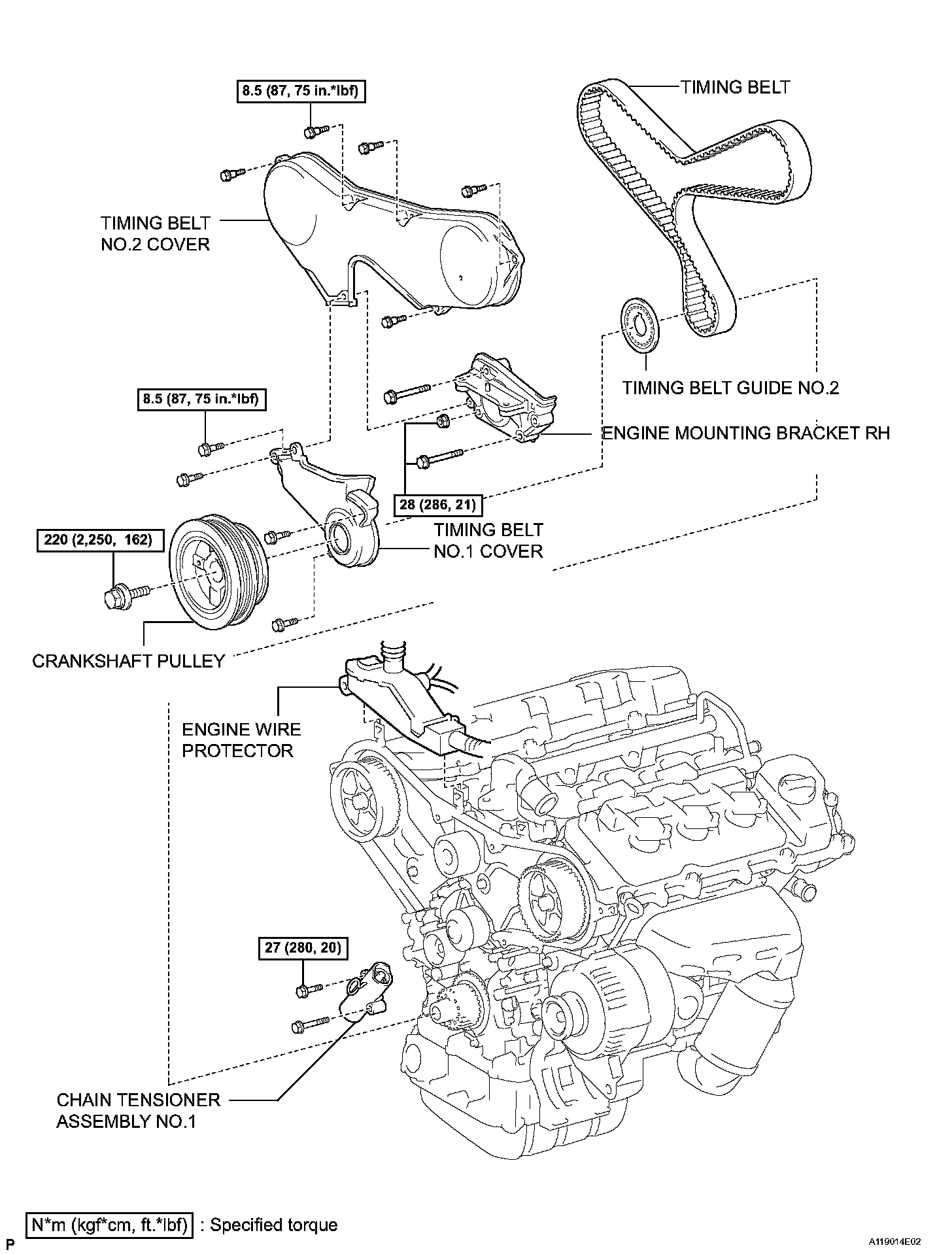 Torque: 19 Nm (189 kgf-cm, 14 ft. lbs.)
