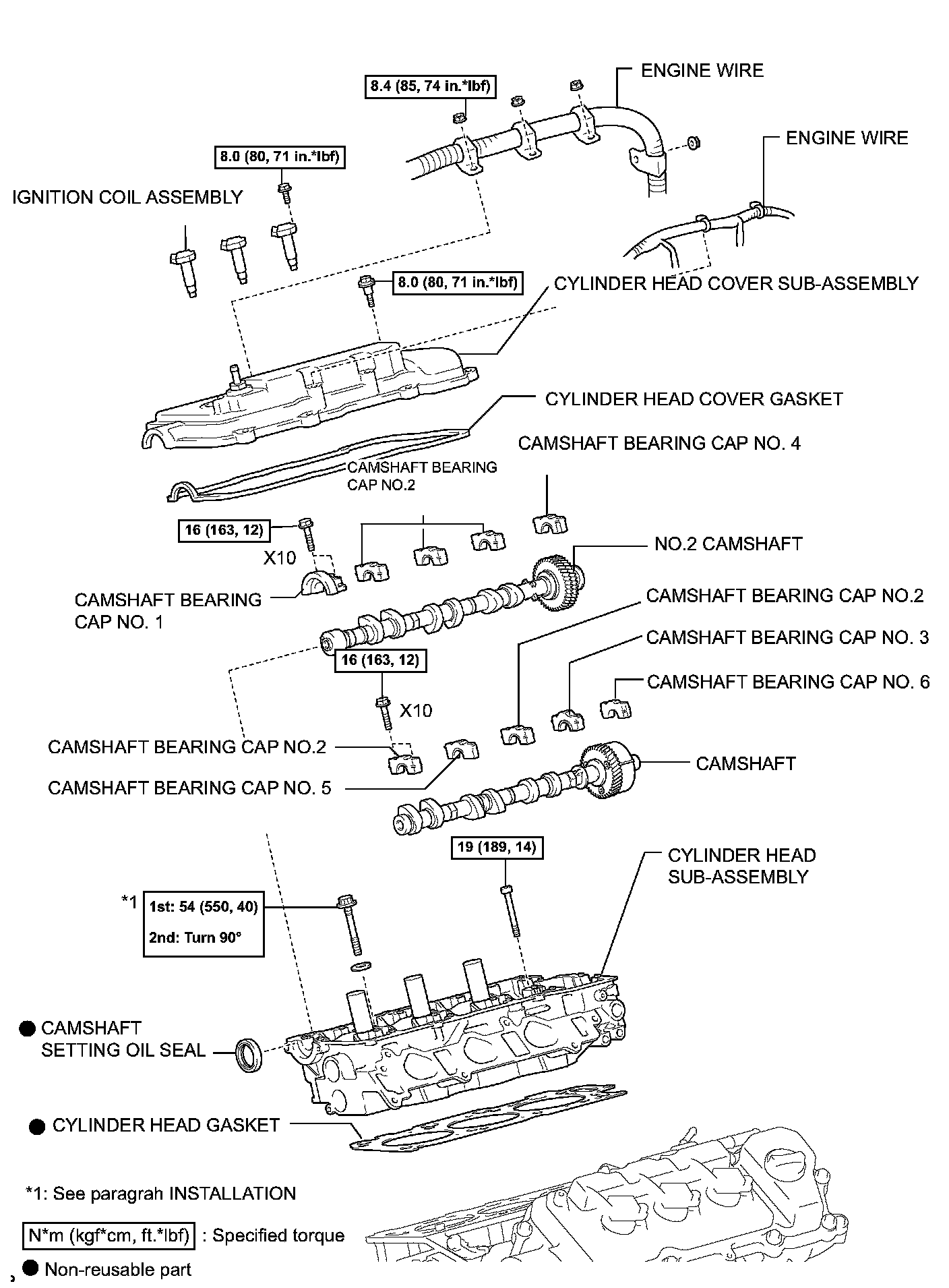 Torque: 54 Nm (550 kgf-cm, 40 ft. lbs.)