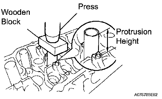 c. Using a press and wooden block, install the spark plug tube to the required protrusion height.