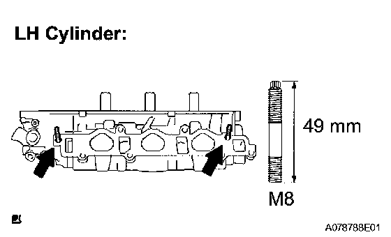 b. Install the stud bolts on the intake side (LH cylinder).