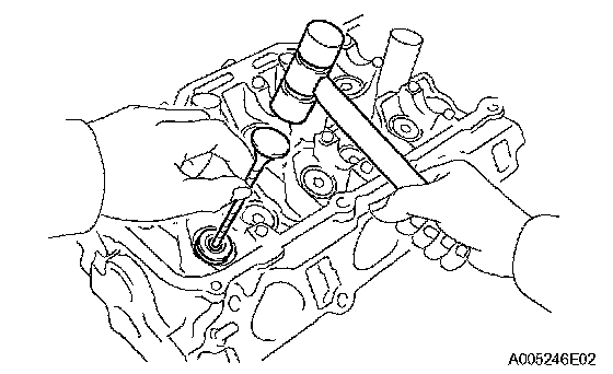 c. Using a plastic-faced hammer and a discarded valve (the tip is wrapped with tape), lightly tap the installed valve to fit into place.