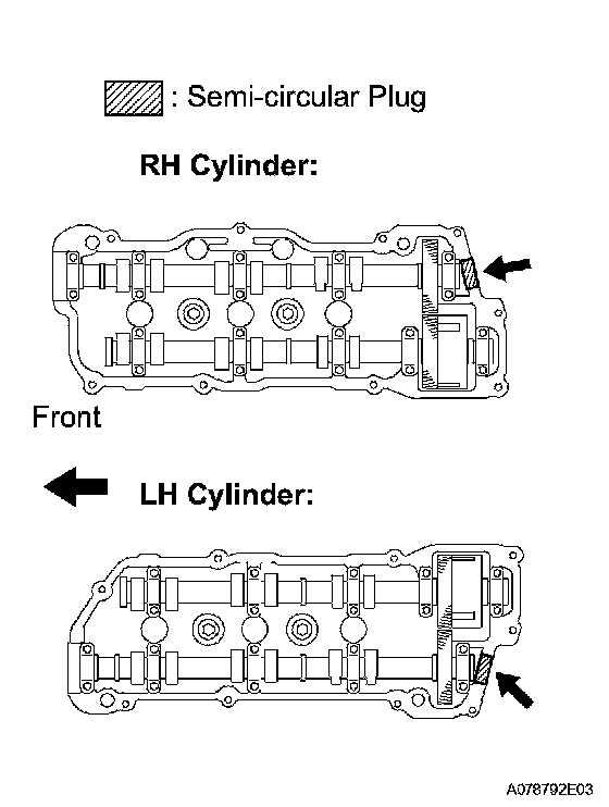 c. Install the 2 semi-circular plugs to the cylinder heads.