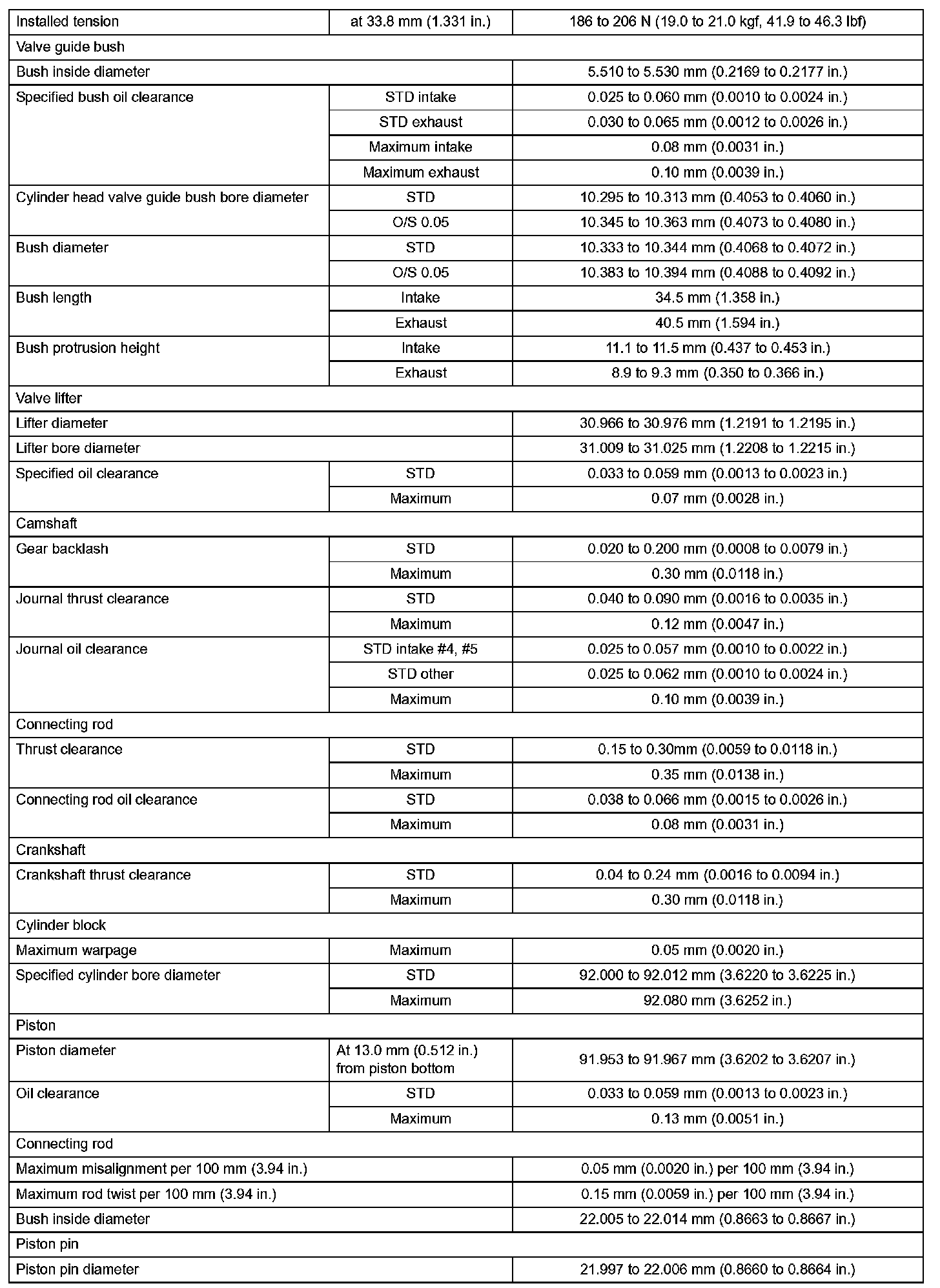 Engine Mechanical-Service Data (Part 2):