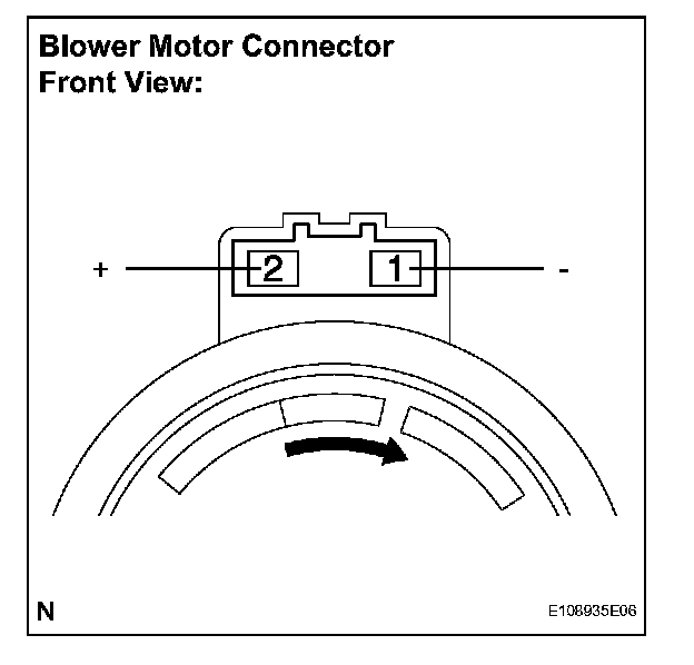 b. Connect the negative (-) lead connected to terminal 1 of the blower motor connector, the positive (+) lead to terminal 2.
