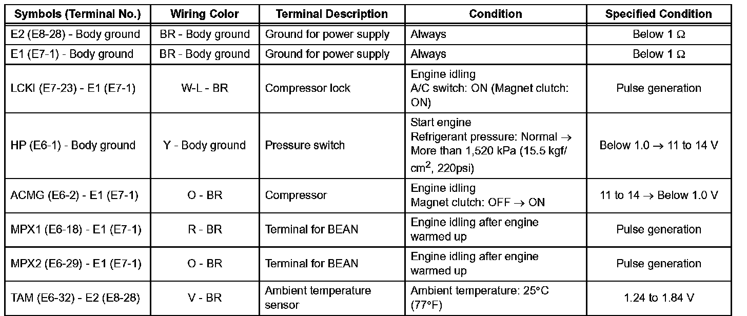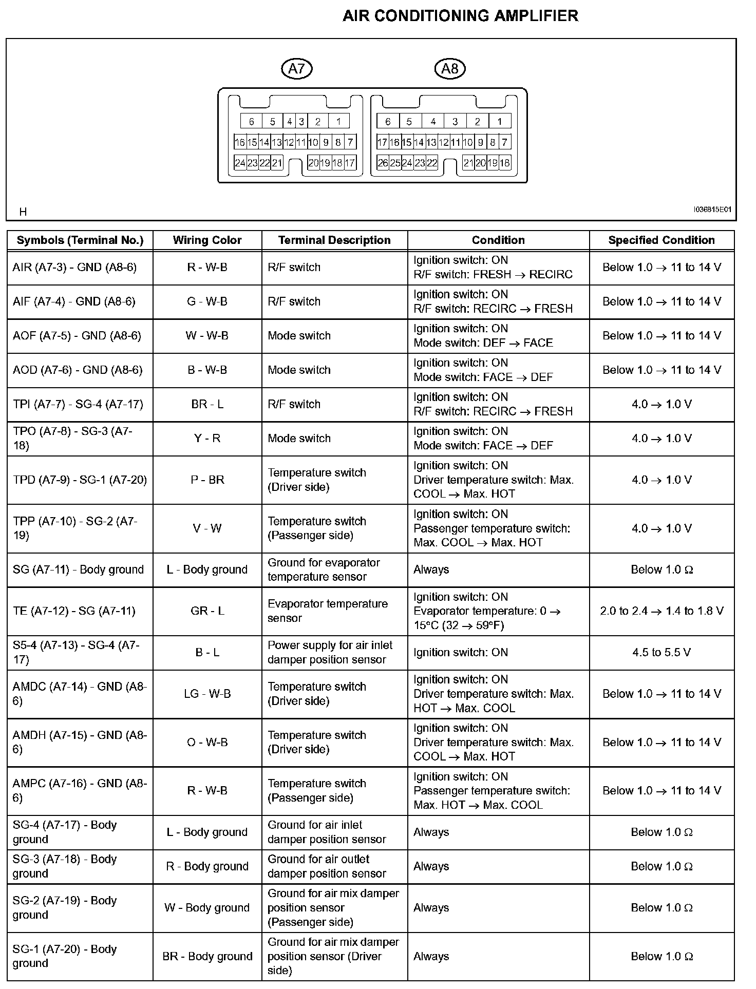 TERMINALS OF ECUTerminals Of Control Module/Pinouts - Air Conditioning Amplifier (Part 1):