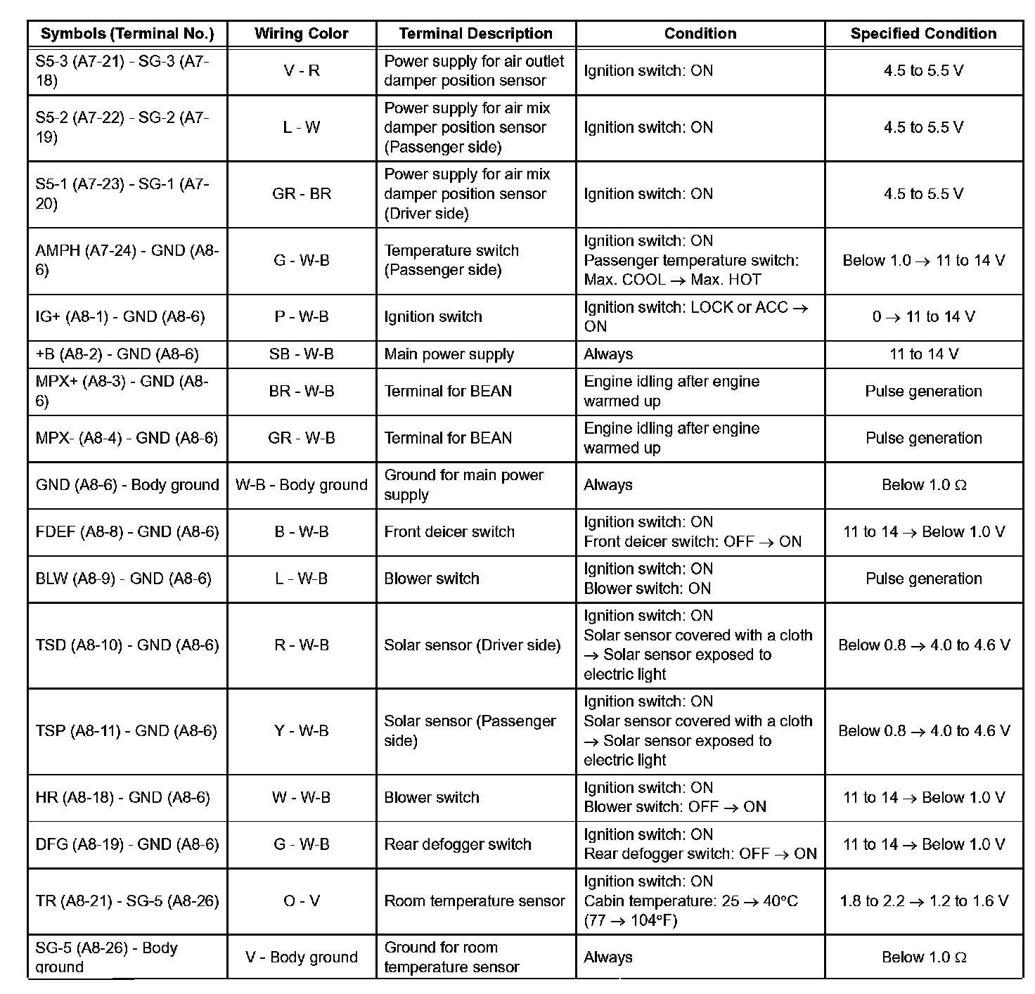 Terminals Of Control Module/Pinouts - Air Conditioning Amplifier (Part 2):