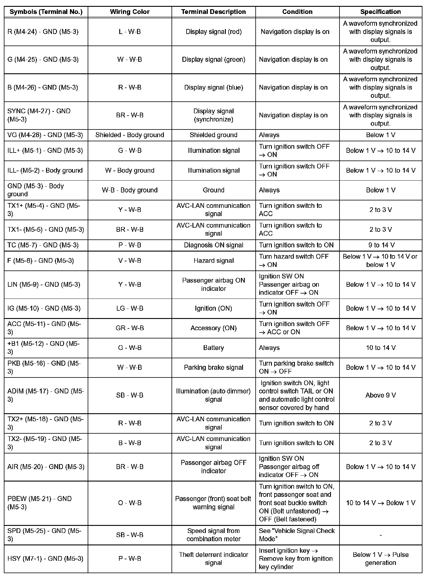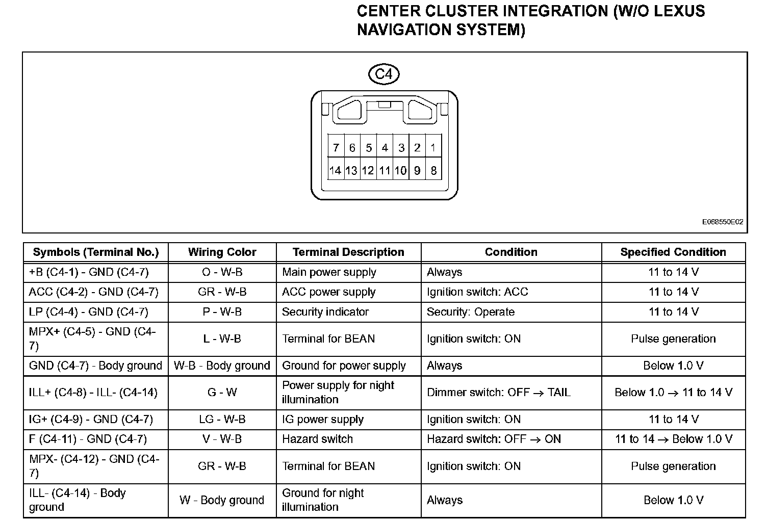 Terminals Of Control Module/Pinouts - Center Cluster Integration (W/O LEXUS Navigation System):