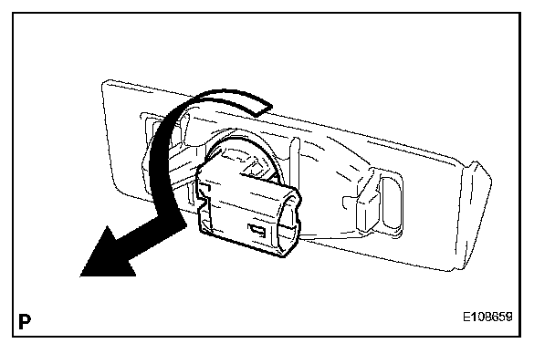 a. Turn in the direction indicated by the arrow and remove the license plate light bulb and the license plate light socket as a unit.