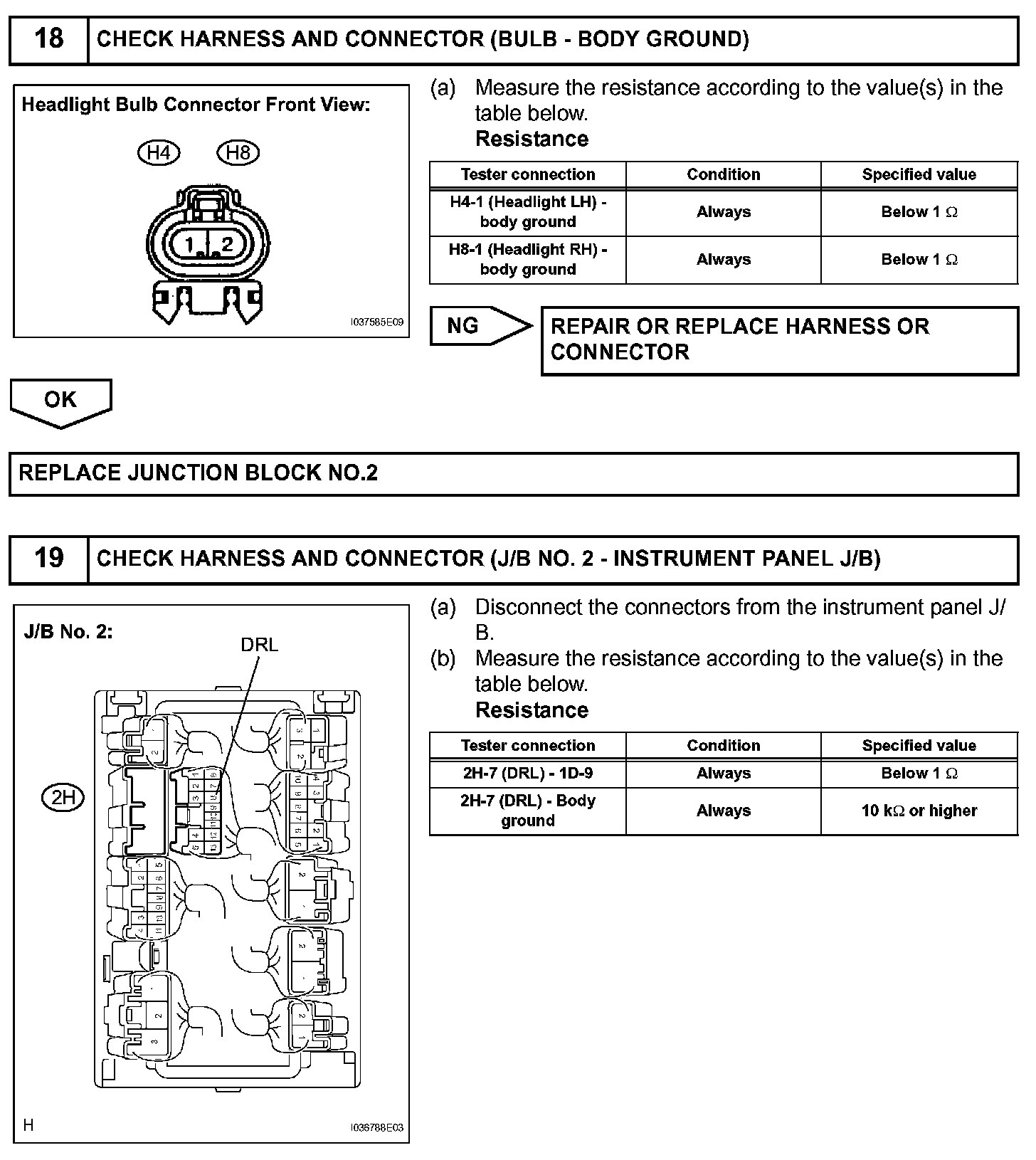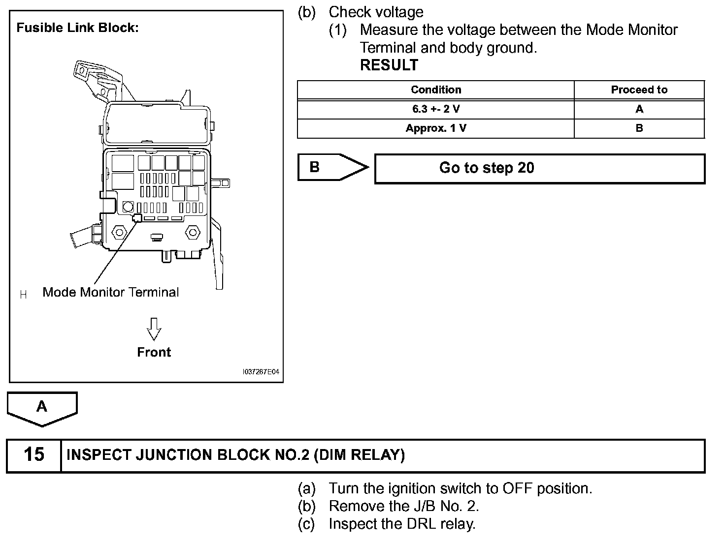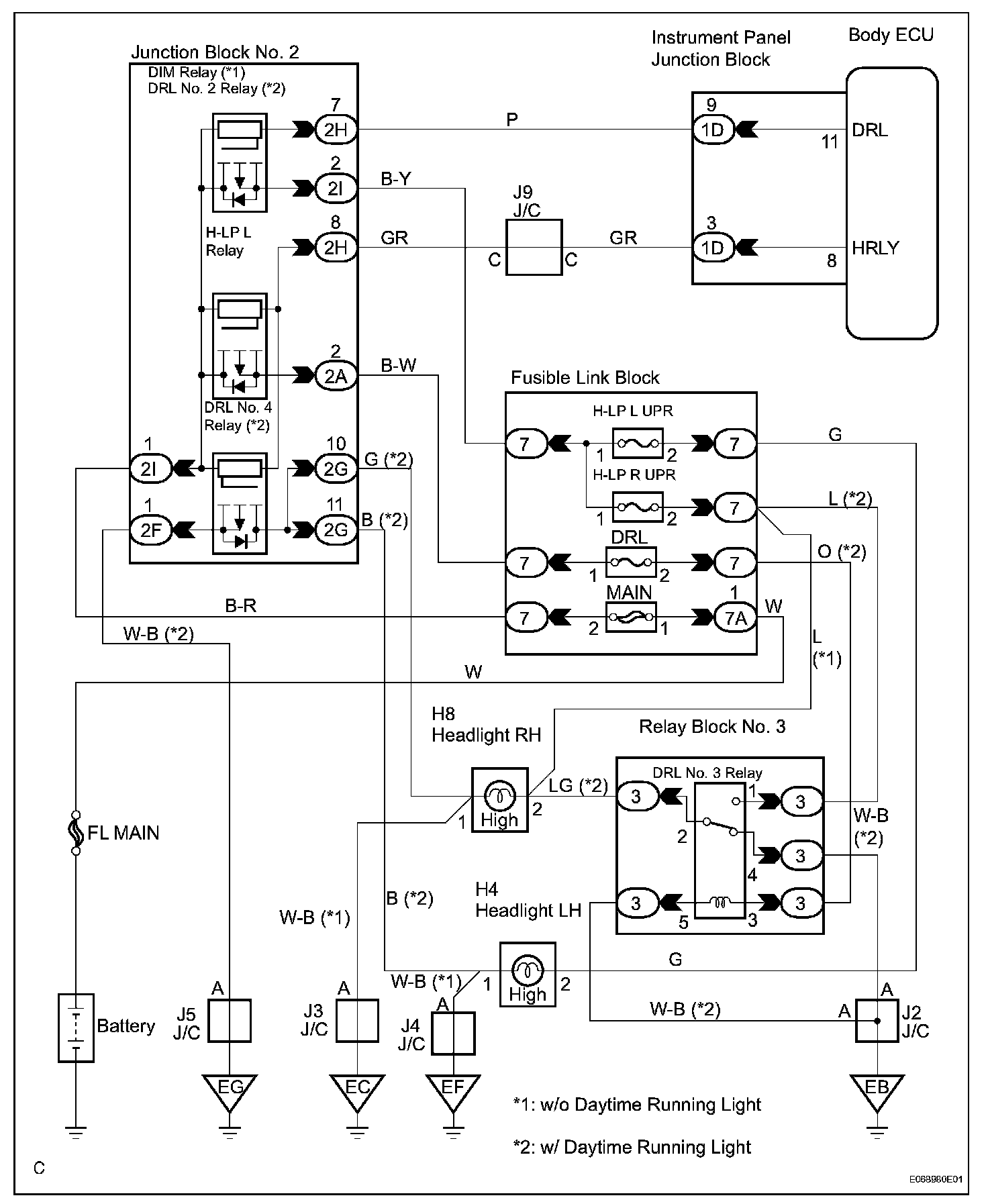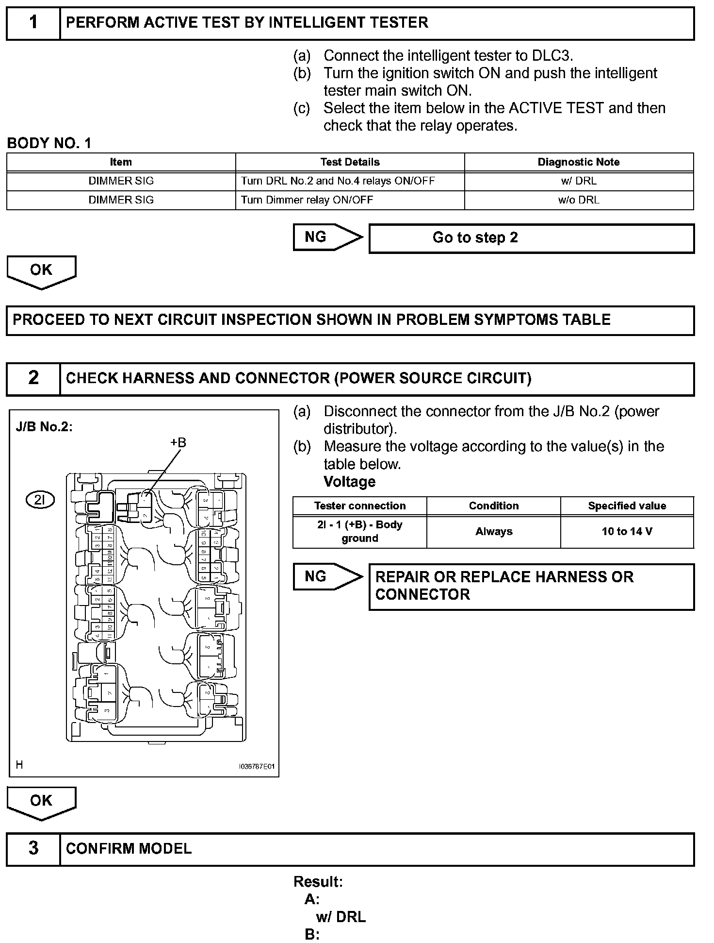 The multiplex network body ECU controls the DIMMER, DRL No.2 and DRL No.4 relays the DIM, DRL No.2 and DRL No.4 relays installed in the power distributor.