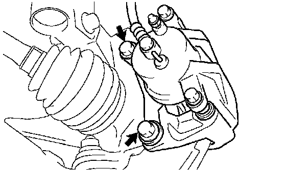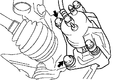 NOTICE: Use a string or other device to keep the brake caliper from hanging down.