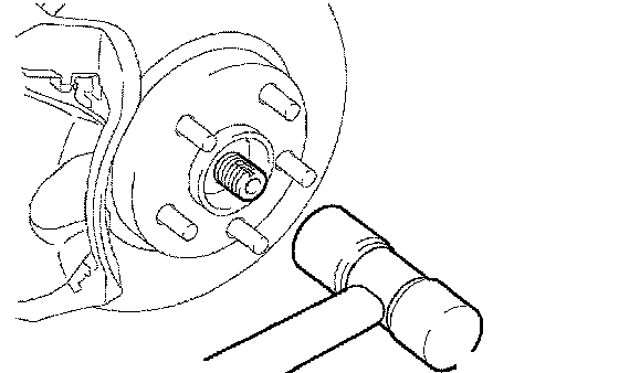 b. Using a chisel and hammer, stake the axle hub LH nut.