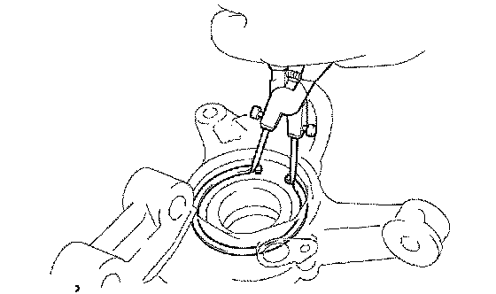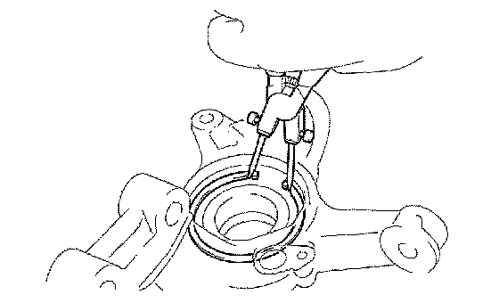 a. Using snap ring pliers, install a new front axle hub LH hole snap ring.