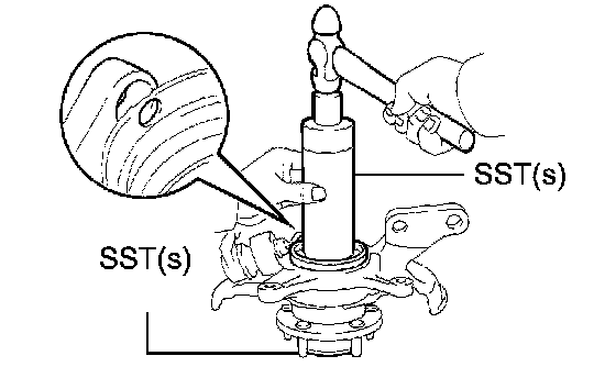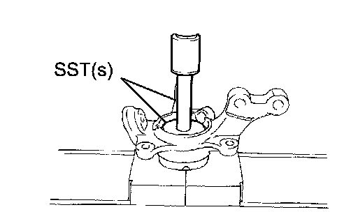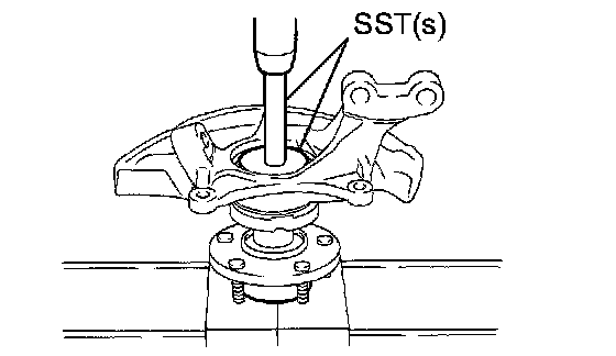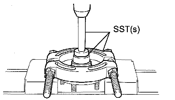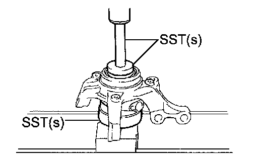 b. Using SST(s) and a press, press the front axle hub LH bearing until it contacts the SST(s).