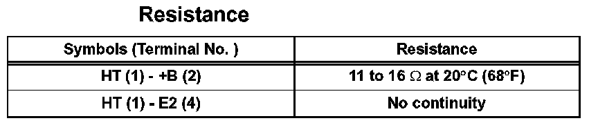 1. Using an ohmmeter, measure the resistance between the terminals.