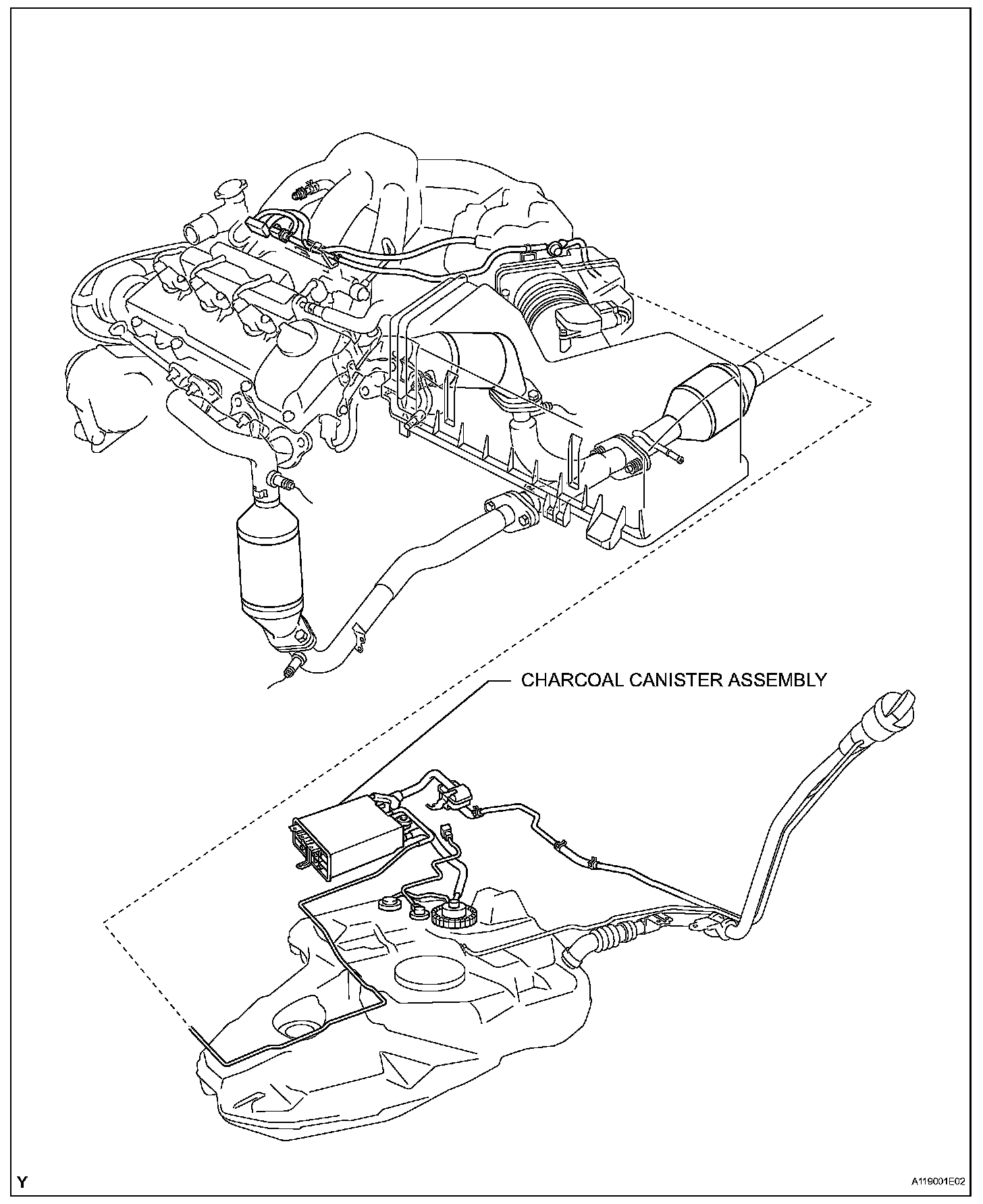 1. INSTALL CHARCOAL CANISTER ASSEMBLY