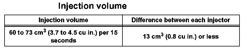 NOTE: Always do the switching at the battery side. If the injection volume is not as specified, replace the injector.