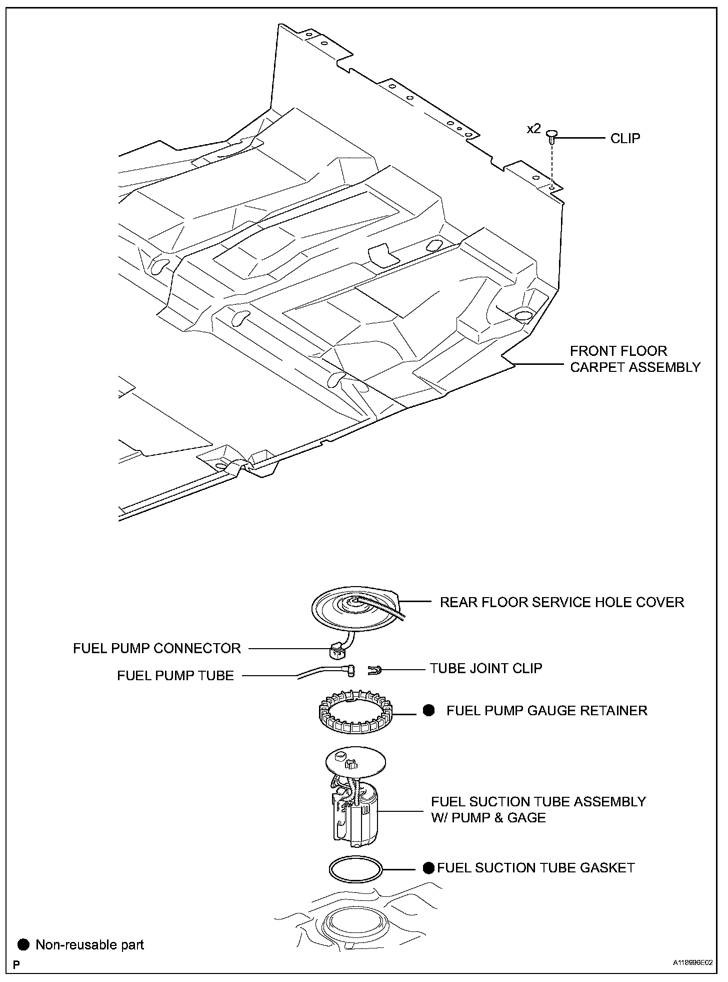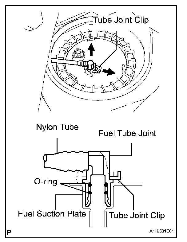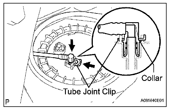 1. Remove the tube joint clip, and pull out the fuel pump tube.