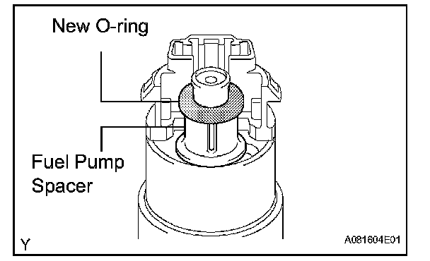 c. Remove the O-ring and the fuel pump spacer from the fuel pump.