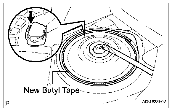 HINT: A rib on the fuel pump gauge retainer can be fitted into a tip of the SST.