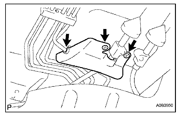 a. Remove the 3 clips (A) and 6 nuts, and then remove the fuel tank protector No. 1.