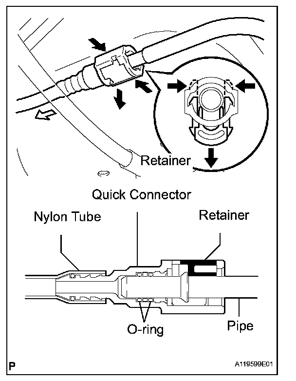- After installing the tube joint clip, check if the fuel joint is securely connected by pulling it.
