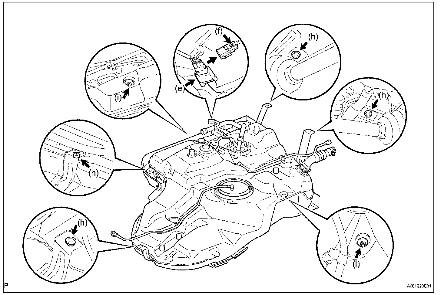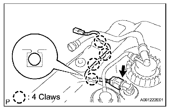 b. Unfasten the 4 claws, and then remove the fuel tank wire.