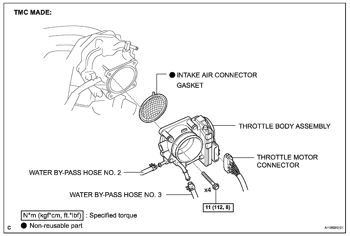 1. Install the throttle body with the 4 bolts.