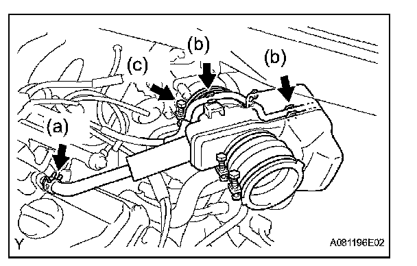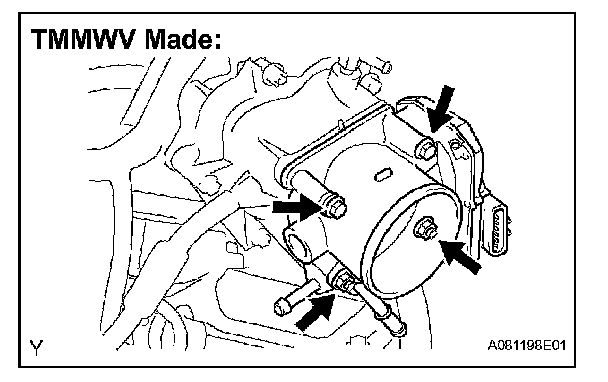 1. Remove the 2 bolts and 2 nuts, and then remove the throttle body.