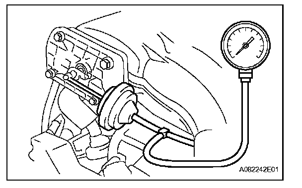 a. Using a 3-way connector, connect vacuum gauge to the actuator hose.