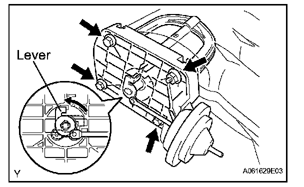 b. Rotate the lever to the closed position as shown in the illustration and pull out the intake air control valve No.2.