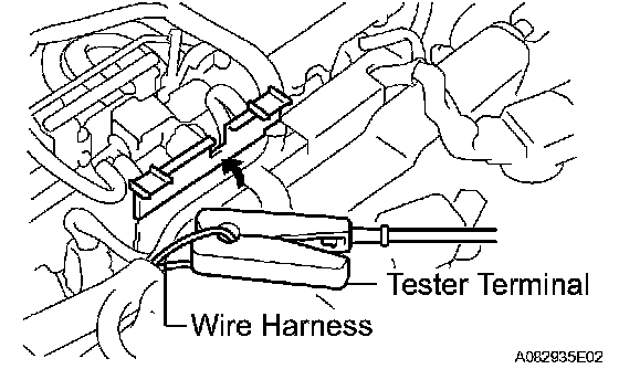 4 Connect the tester terminal of the timing light to the engine.