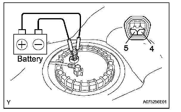 1. Connect the positive (+) lead from the battery to terminal 4 of the connector, and the negative (-) lead to terminal 5.